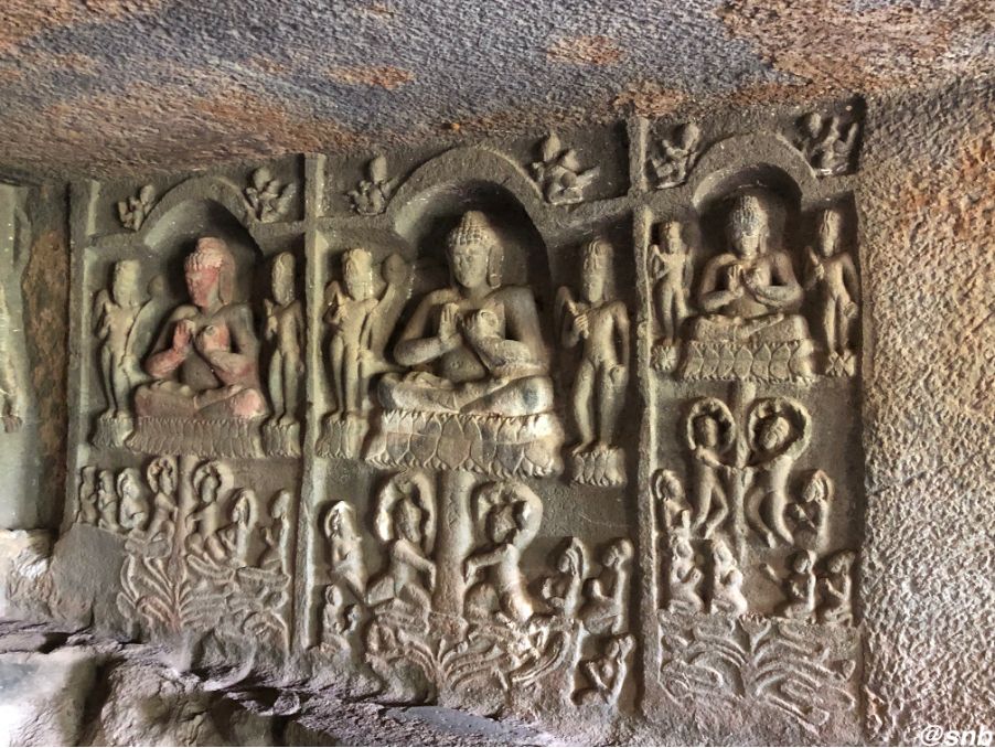 গুহা নং ৬-এর চৈত্যের ধারের দেওয়ালের উপর করা ভাস্কর্য